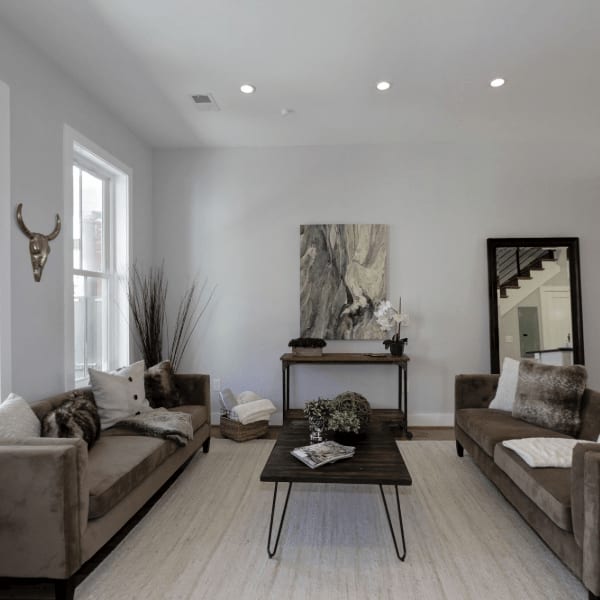 HOUZZ defines it as “The New Neutrals” but the idea is to simply take your tonal shades up a notch by layering in TEXTURE! As we see wallpaper making a comeback in home décor, try using a linen version of your favorite neutral tone. Don’t want to commit to something permanent, try adding texture in pillows and throws or woods and leathers. At 640 Newton Place NW, we used soft velvet sofas with textured furry pillows in the same shades of brown. We added different woods of the same hue and brought it all together with a bold piece of art.
