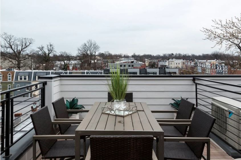 The two-story penthouse, Unit 10, has a deck on the second level. (Benjamin C Tankersley/For The Washington Post)
