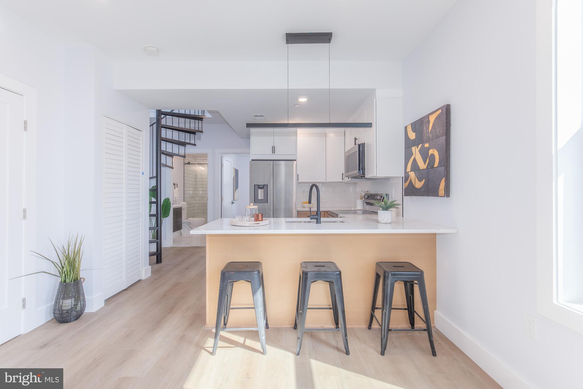 Welcome to 1012 17th Penthouse #7 - a modern sanctuary in the vibrant heart of Washington, DC. The condo has thoughtfully designed living space, combining contemporary finishes with everyday comfort. Step inside and find a one-of-a-kind 2 level layout, recessed lighting, and an abundance of natural light that creates an inviting and sophisticated atmosphere. The centerpiece of the home is the kitchen, featuring custom cabinetry, premium appliances, and upgraded quartz countertops - perfect for entertaining or casual dining. The upstairs bedroom and full bath make the perfect primary suite, and this level also provides access to your very own roof deck - your private haven for relaxation.