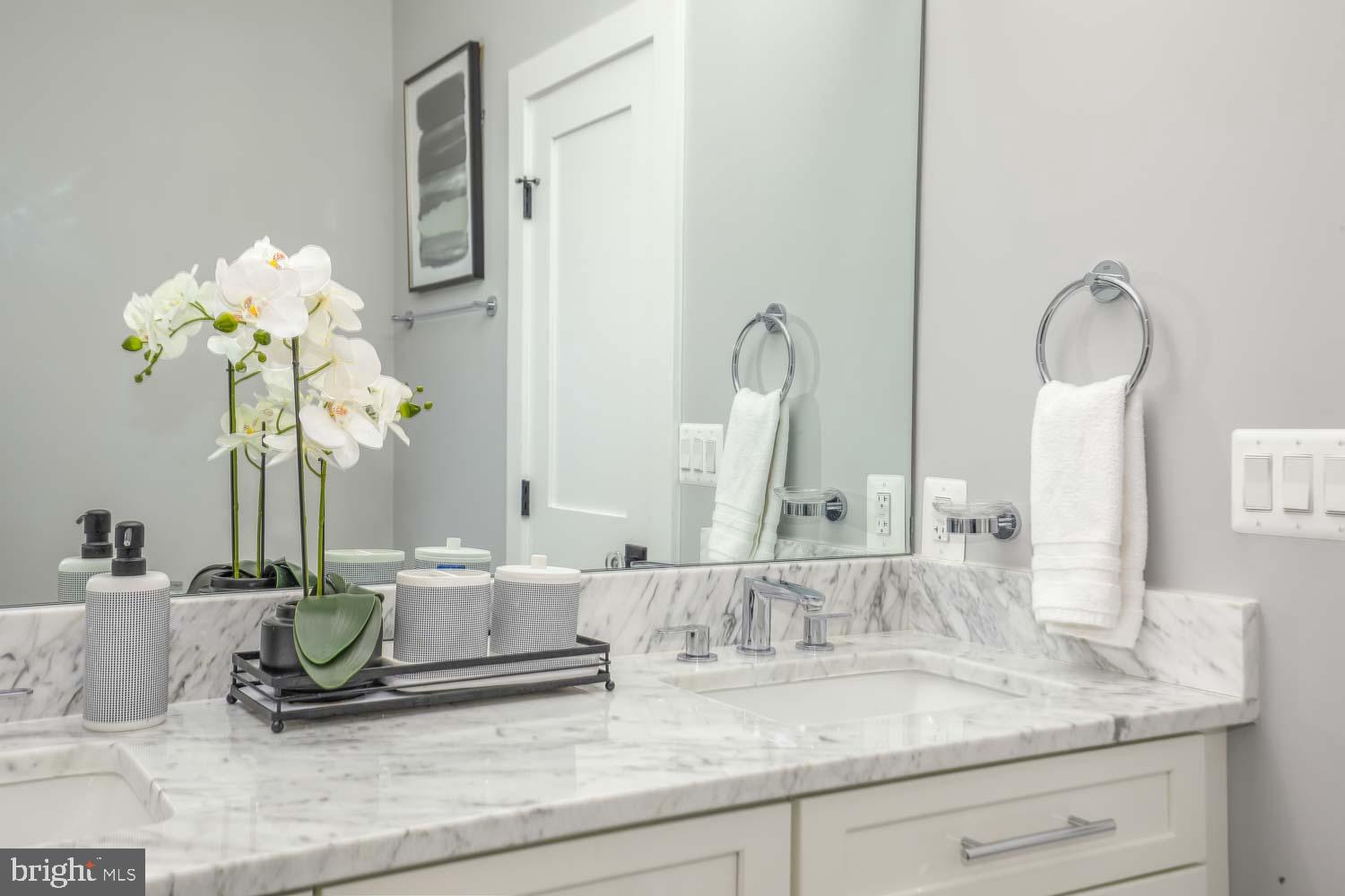The 2nd floor has two guest bedrooms sharing a full bath, plus an expansive primary suite w/ a full ensuite bathroom with striking walk-in shower & lots of closet space. **ALL Bathrooms are Carrara Marble .. so beautiful!