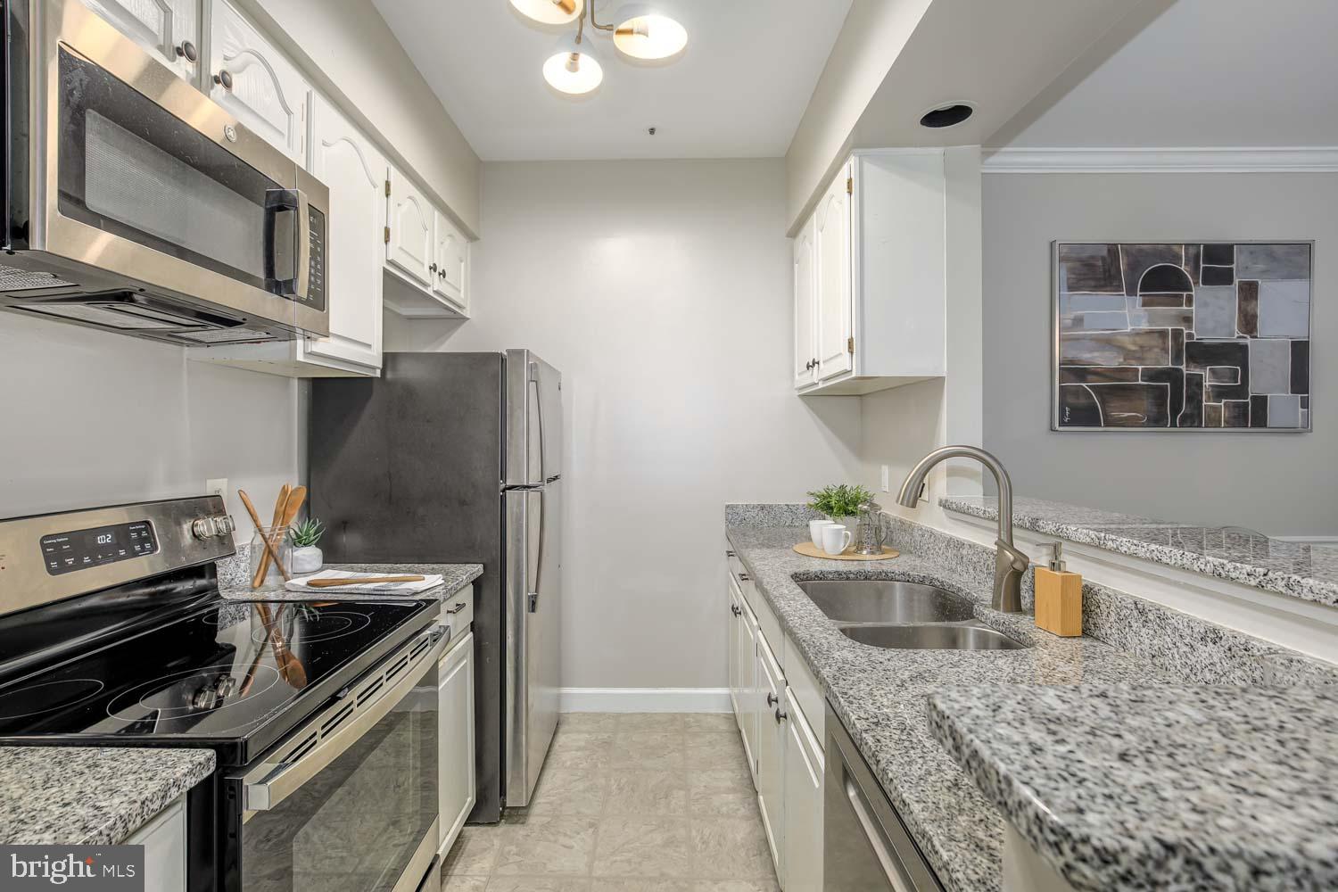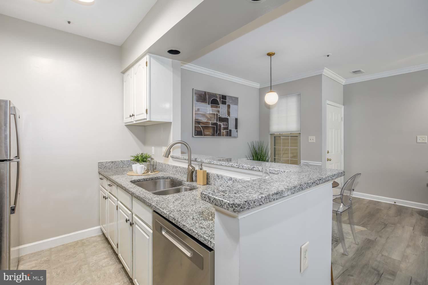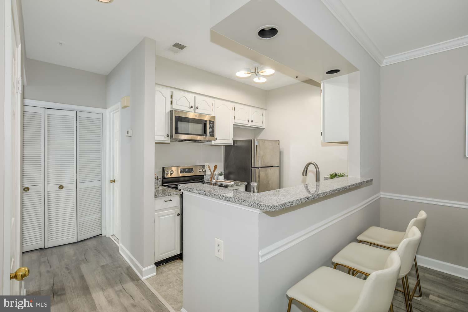 This two-bedroom, two-bath home has a spacious & open floor plan with brand new luxury vinyl flooring and carpeting. The kitchen is equipped with granite countertops and the option for casual dining at the breakfast bar, or you can enjoy meals in the formal dining area.