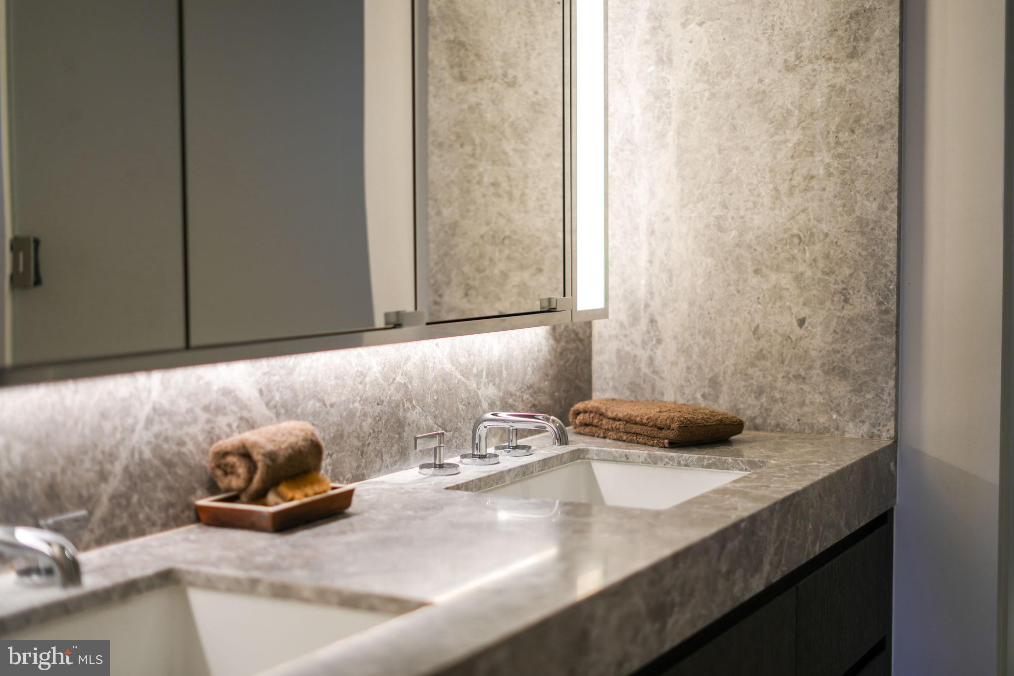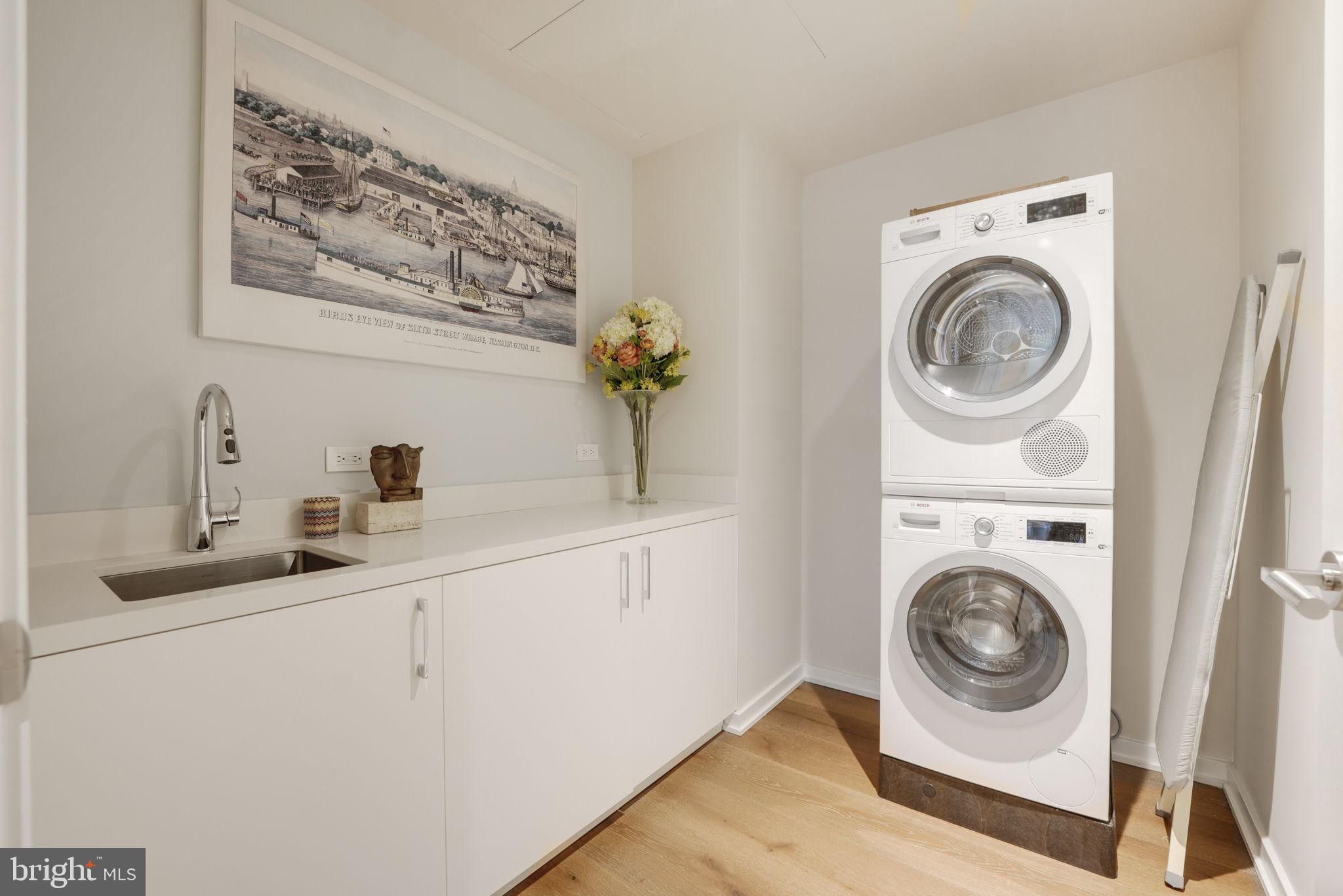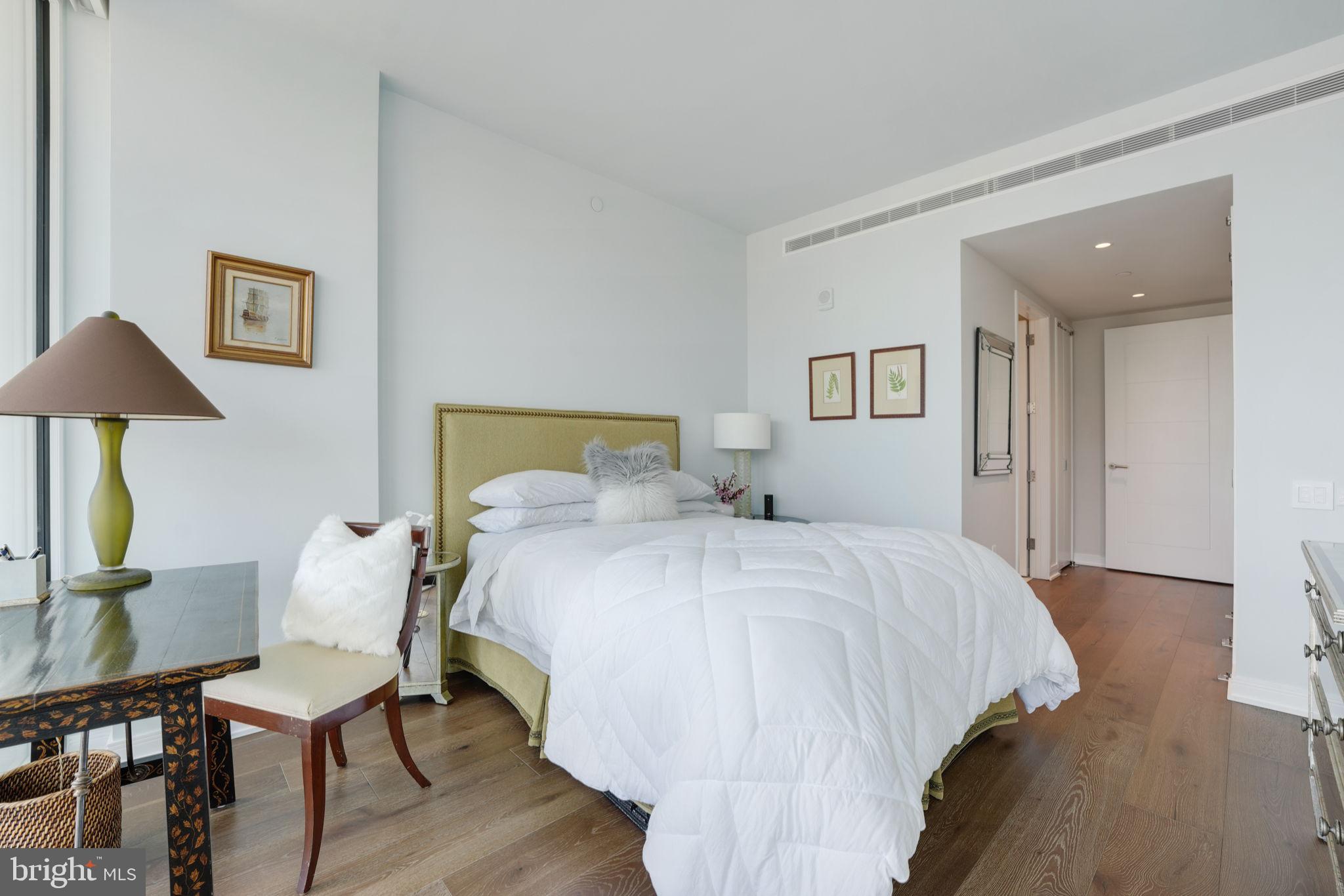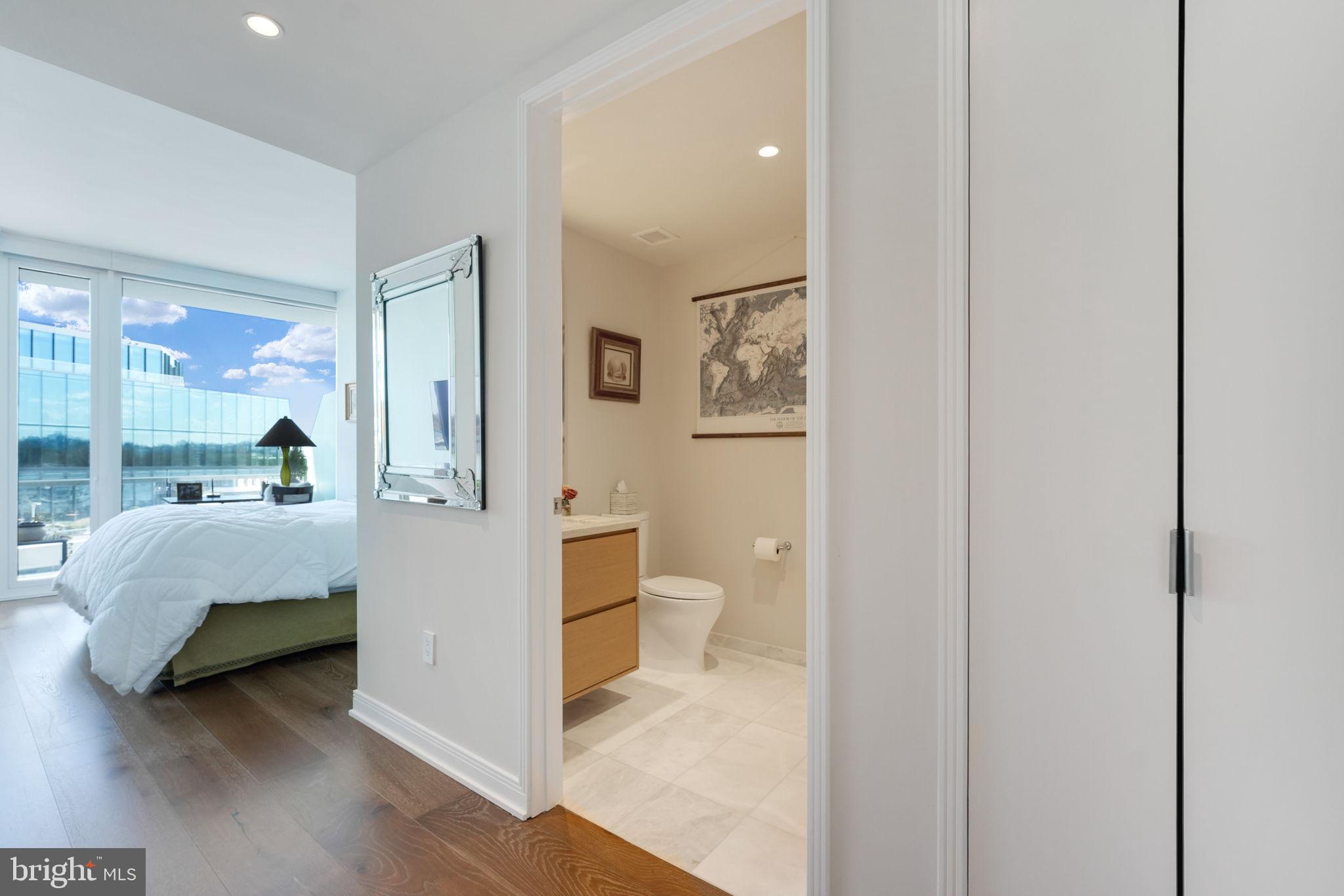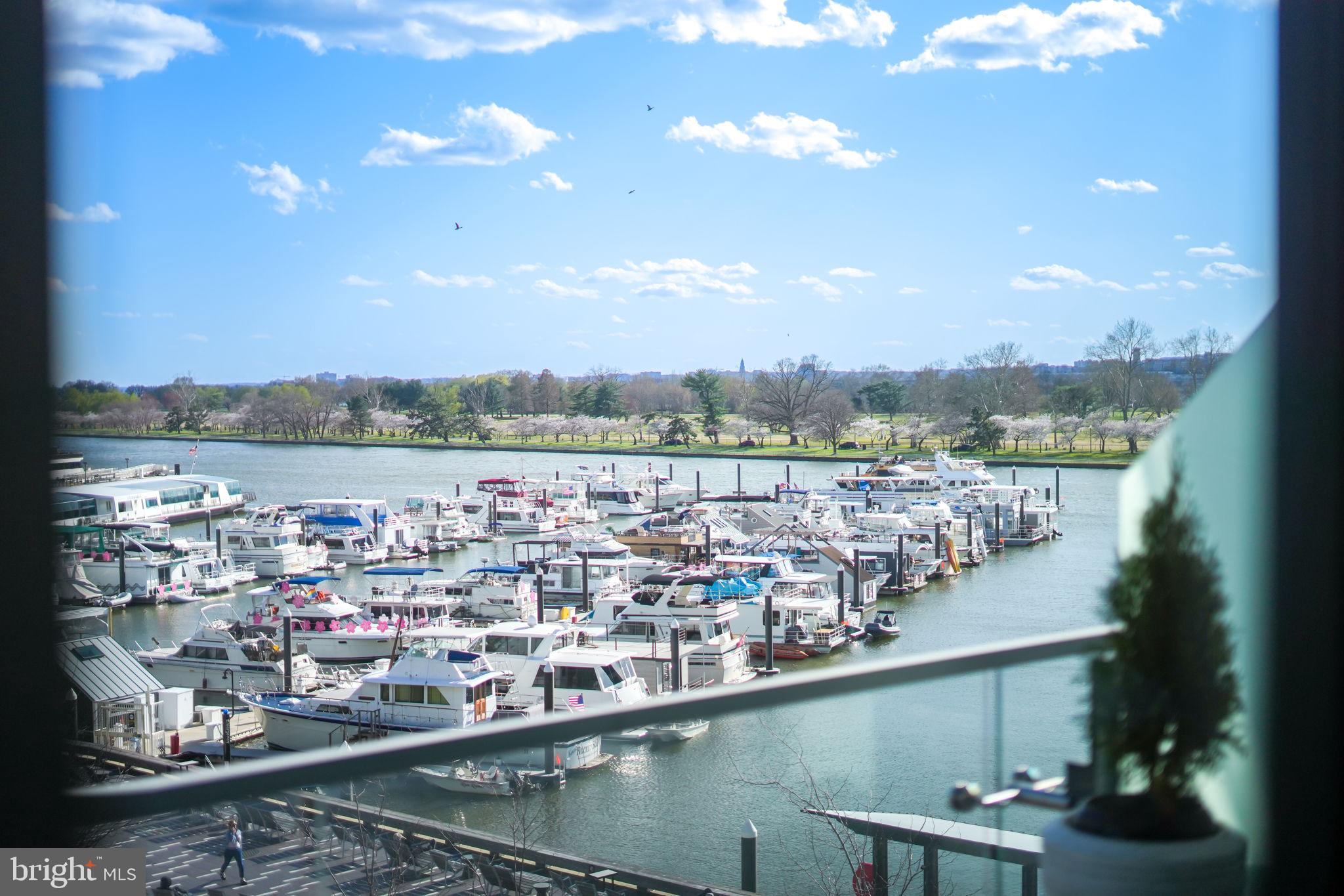 1ST TIME ON THE MARKET. Stunning 2 bedroom, 2.5 bathroom residence at The Wharf's premier, full-service community The Amaris. Designed by world-renowned architect Rafael Vinoly, #402 offers over 1,600SF of unparalleled contemporary design from the moment you enter the home from a private in-unit elevator and are greeted by floor-to-ceiling windows offering Potomac River views from every room. An open living & dining area entrees to the large, curved 6' deep (310 SF) balcony providing sunrises & sunsets year-round, vistas over the Wharf Marina to Hains Point and East Potomac Golf Course. Oversized kitchen with Stevali cabinets, honed marble countertops, a full-height marble backsplash, fluted & lighted glass cabinets, a waterfall-edge oversized island, and cabinet-front Thermador and Bosch appliances. The primary suite offers a spa-like bath with a handsome stone floating dual vanity, custom Robern mirrored cabinets, soaking tub, and glass-enclosed shower as well as programmable Toto water closet, while the primary offers custom built-in closeting. The second bedroom suite, separated from the primary by the common area, is perfect for a guest, home office or den, and has a sumptuous bath with floating vanity and separate shower. Additionally, #402 offers an elegant powder room (rare in The Amaris), a walk-in laundry room with a utility sink, copious amounts of in-unit storage, custom lighting, and wide-plank European oak flooring throughout. To complete this perfect offering are two secure, side-by-side garage parking spaces (one with an EV hookup - an upgrade no longer available in the building) within feet of your private elevator entry, as well as an additional private storage. The Amaris redefines luxury living with an exclusive collection of world-class amenities designed for comfort, wellness, and entertainment. An indoor, unparalleled saltwater lap pool and hot tub is adjacent to the community's sauna, steam room, and private treatment rooms. The state-of-the-art fitness center is equipped with private training/yoga studios and professional equipment. A community lounge provides reservable space for social events as well as a screening room provides business or entertaining. Additionally, there is a large building-accessed terrace with a serving bar, kitchen, seating areas, fire pits, and lounge. The Amaris retains concierge service, newspaper & package delivery, valet, a dedicated porter, and a full-time front desk staff, among other services. 601 Wharf is an address with world-renowned restaurants, exclusive shopping, live music venues, and marinas all in a setting unlike anything else in DC...and #402 is the perfect marriage of the best of everything both inside and outside your home's front door.