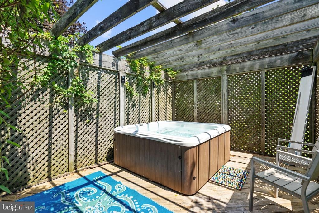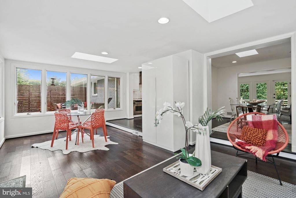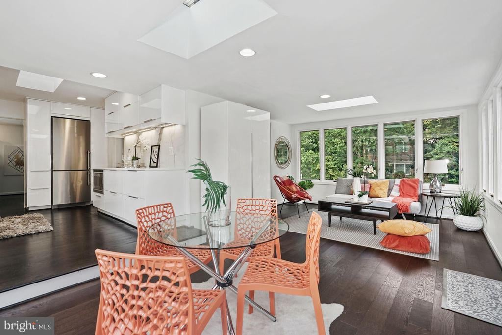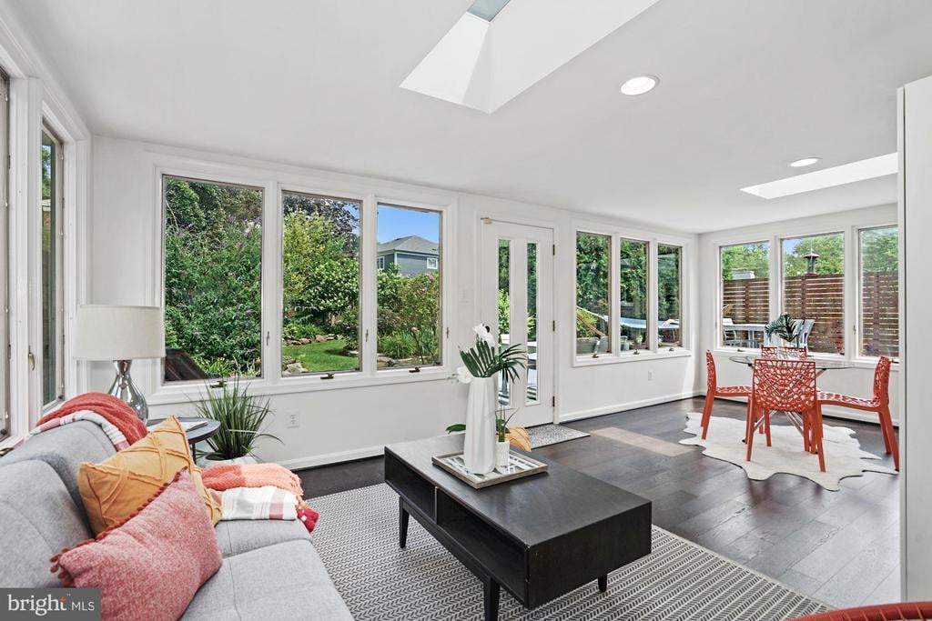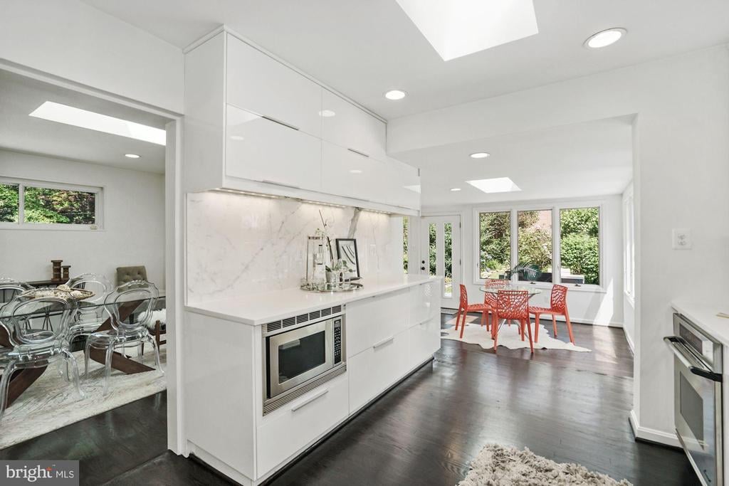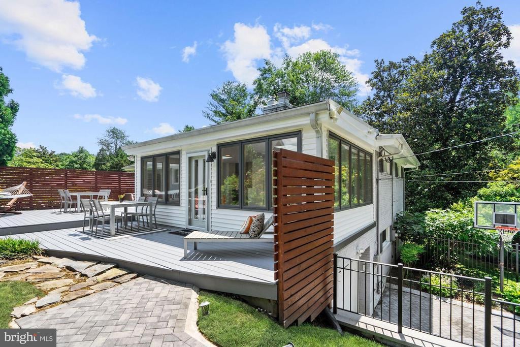 Rare to find renovated mid-century modern home commutable to all parts Bethesda & DC, located just off Mass Ave. Large sunny windows in all the core living spaces, Aspen-like lower level fireplace and fully renovated baths that feel like you are in a European B&B. Perfect for Covid / quarantine with SIX private bedrooms, 3 living room areas, 2 dining spaces, 2 perfectly manicured yards AND BONUS HOT TUB (can be cooled for summer). The kitchen boasts cascading stone backsplash and modern white cabinets. Enjoy 6 functional bedrooms for all your at-home needs (private offices, yoga studio or gym, play or home schooling room - plenty of sunny escapes). The exterior lavish landscaping offers a sunning deck and blooming yard. Escape to the hot tub gazebo to relax and watch the stars!